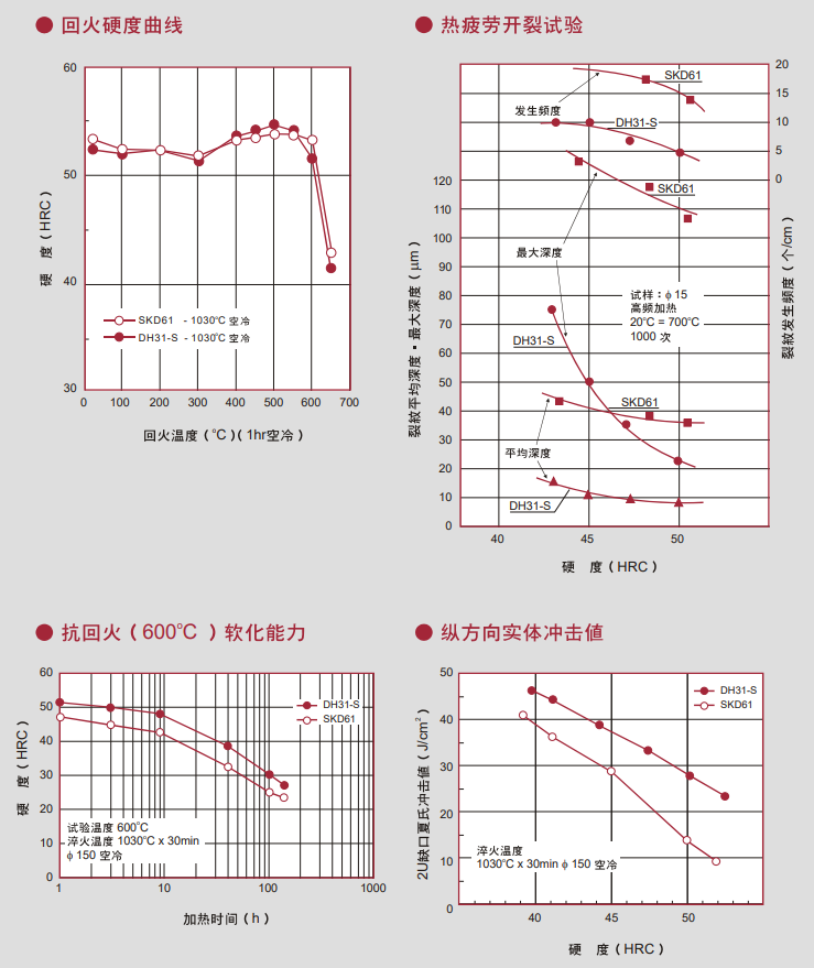 耐熱疲勞開(kāi)裂性極為良好(相對(duì)于SKD61 ) 。