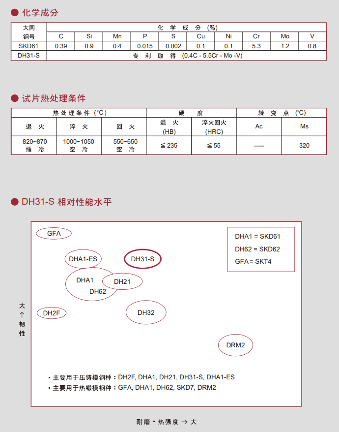 透性極為良好﹐尤其用于大型模具時(shí)韌性良好(相對(duì)于SKD61 )。