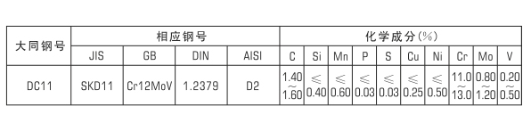 大同的JIS SKD11相應(yīng)鋼種。耐磨性優(yōu)異、空冷淬硬。